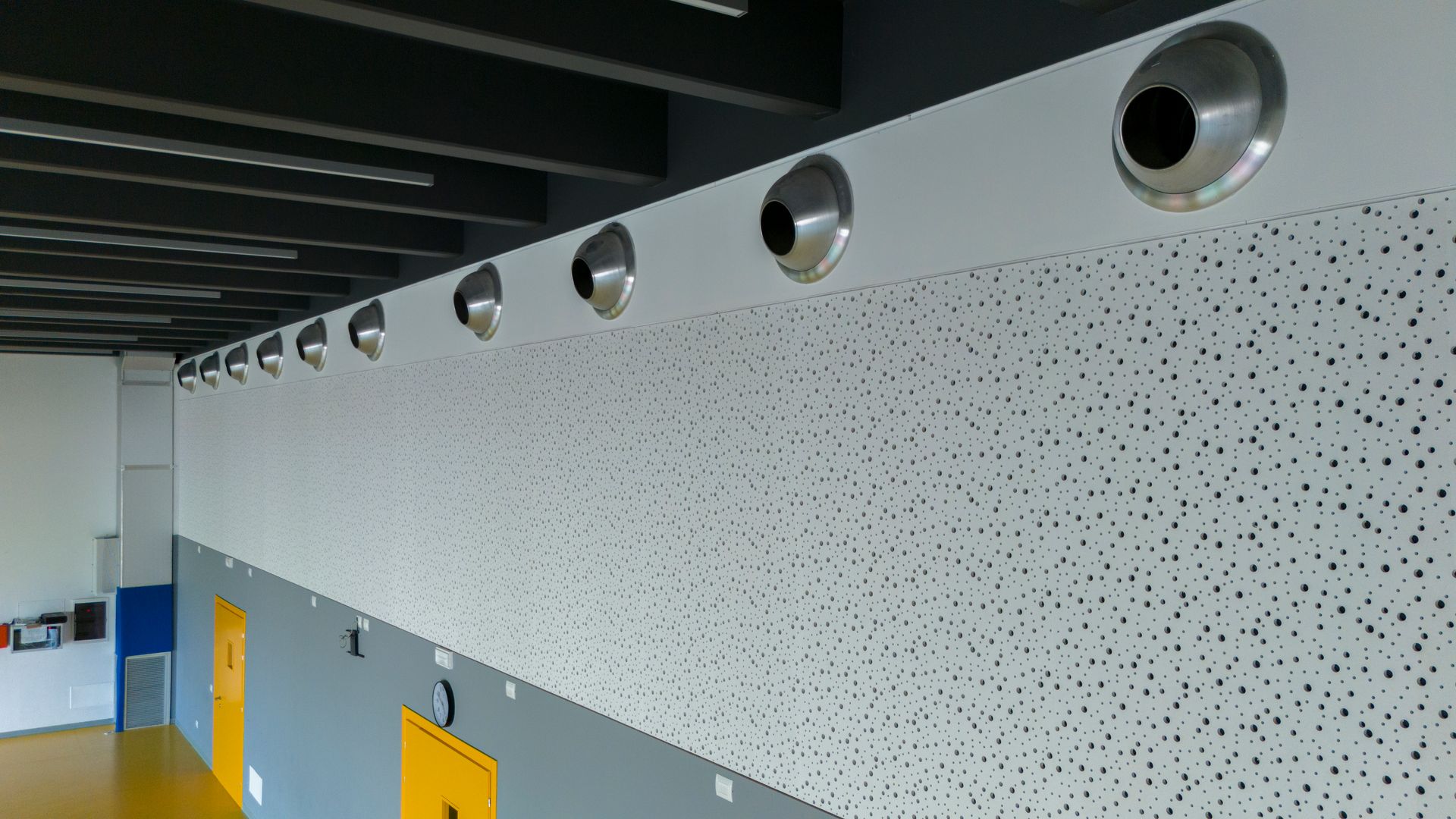 Parzialmente prefabbricata, con vano scale di controventatuira confezionato in opera, la struttura è realizzata su più livelli, ognuno di questi dotati di pavimento radiante per il controllo della temperatura.